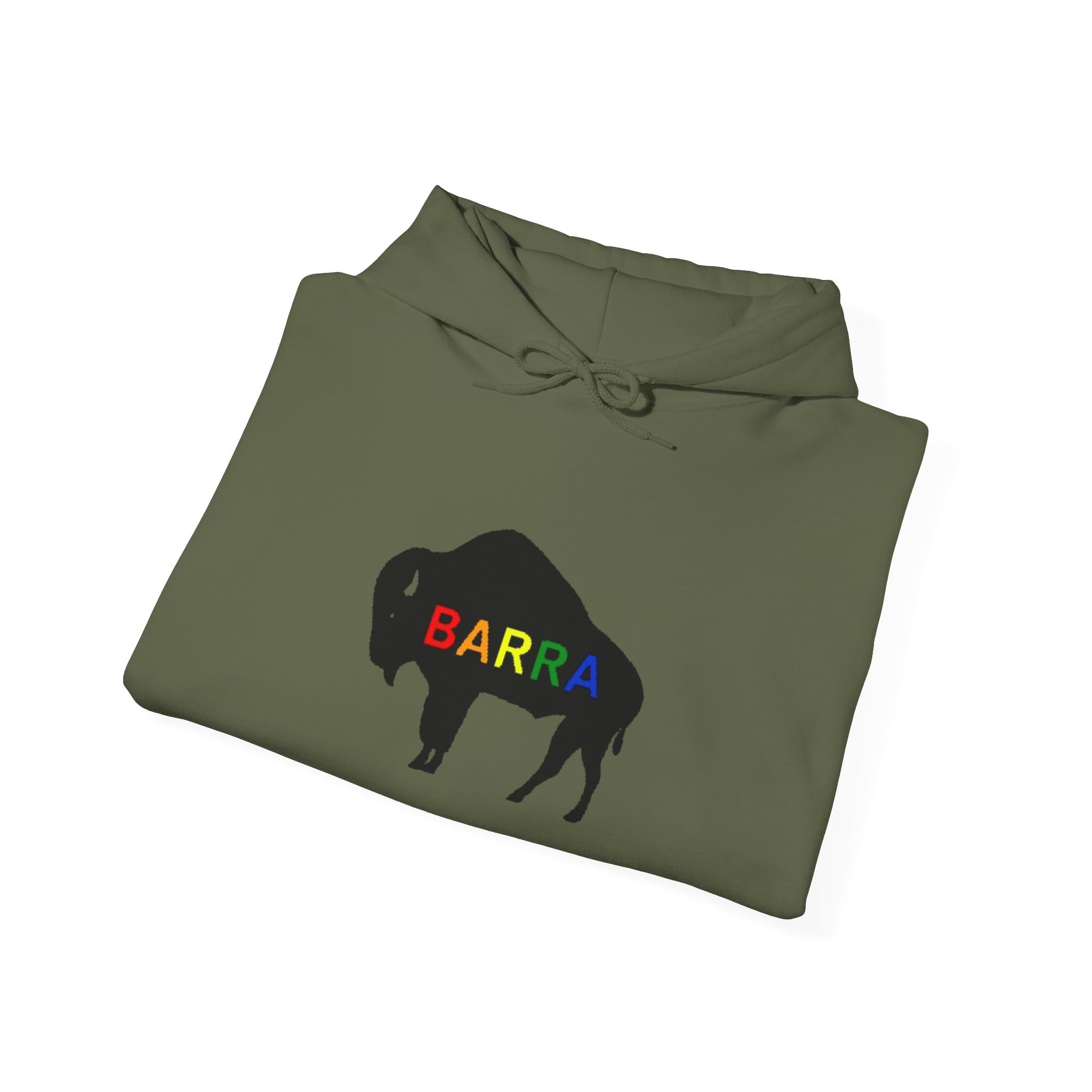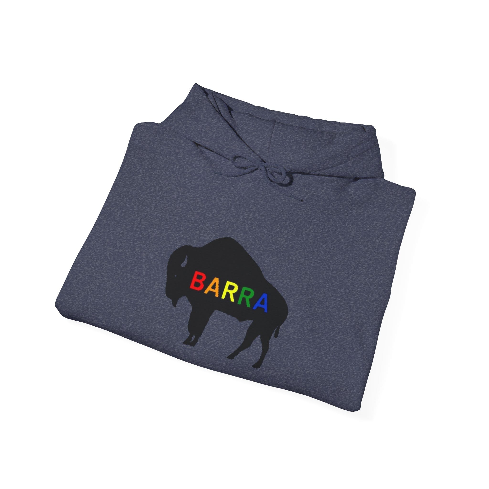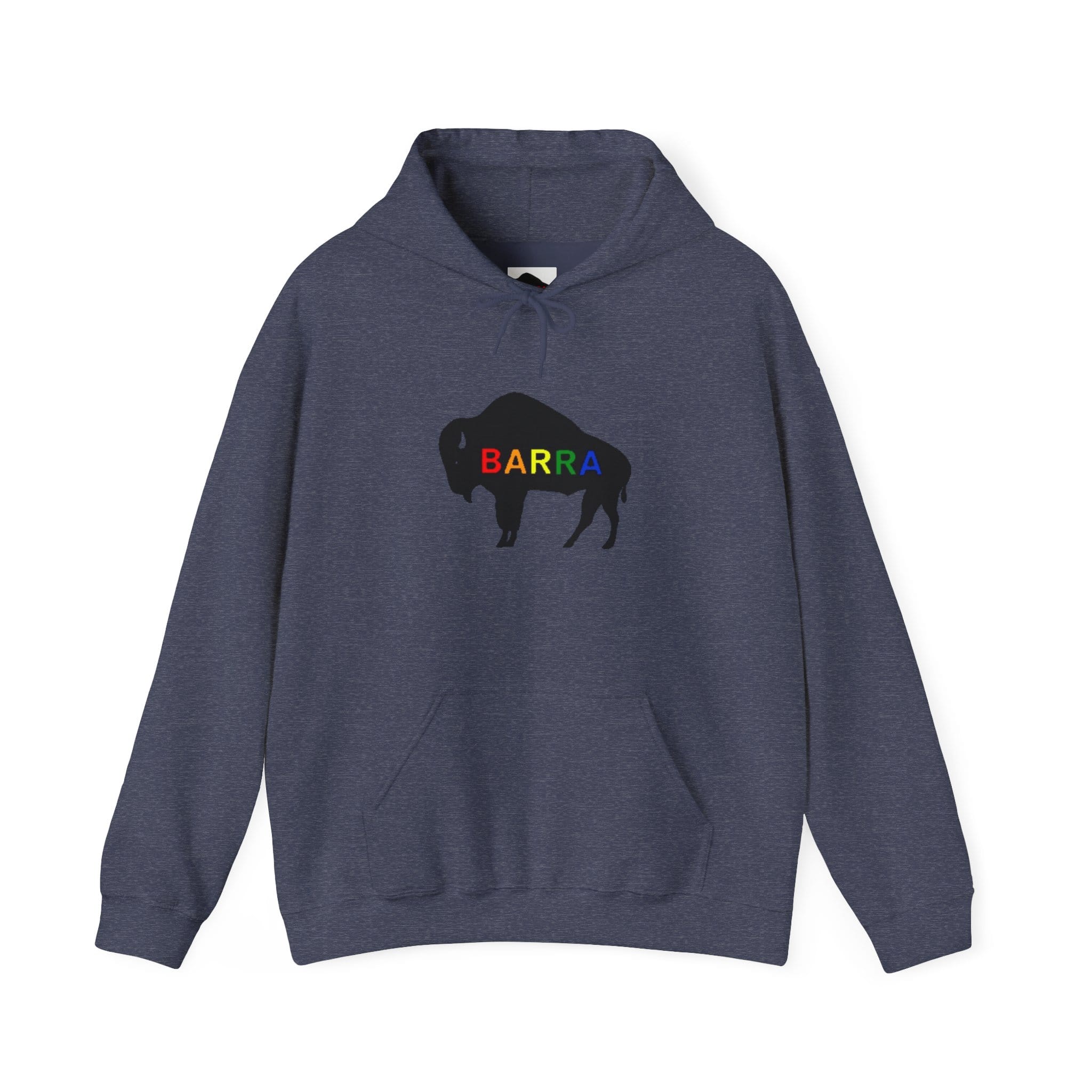 A roomy, cozy hoodie that wears like a warm memory of open plains and slow afternoons. The bold buffalo silhouette sits centered on the chest in stark black, stamped with a crimson name that reads like a brand of quiet confidence. Small buffalo motifs on both sleeves add a subtle, frontier-ready detail when you move. Thick double-lined hood and a color-matched drawcord frame the face, while the kangaroo pouch tucks hands, keys, or a late-night coffee. It’s built to last — a midweight cotton/poly blend that holds its shape and print wash after wash. Choose this when you want something straightforward, sturdy, and with a touch of rugged, minimalist style that slips into everyday life.
