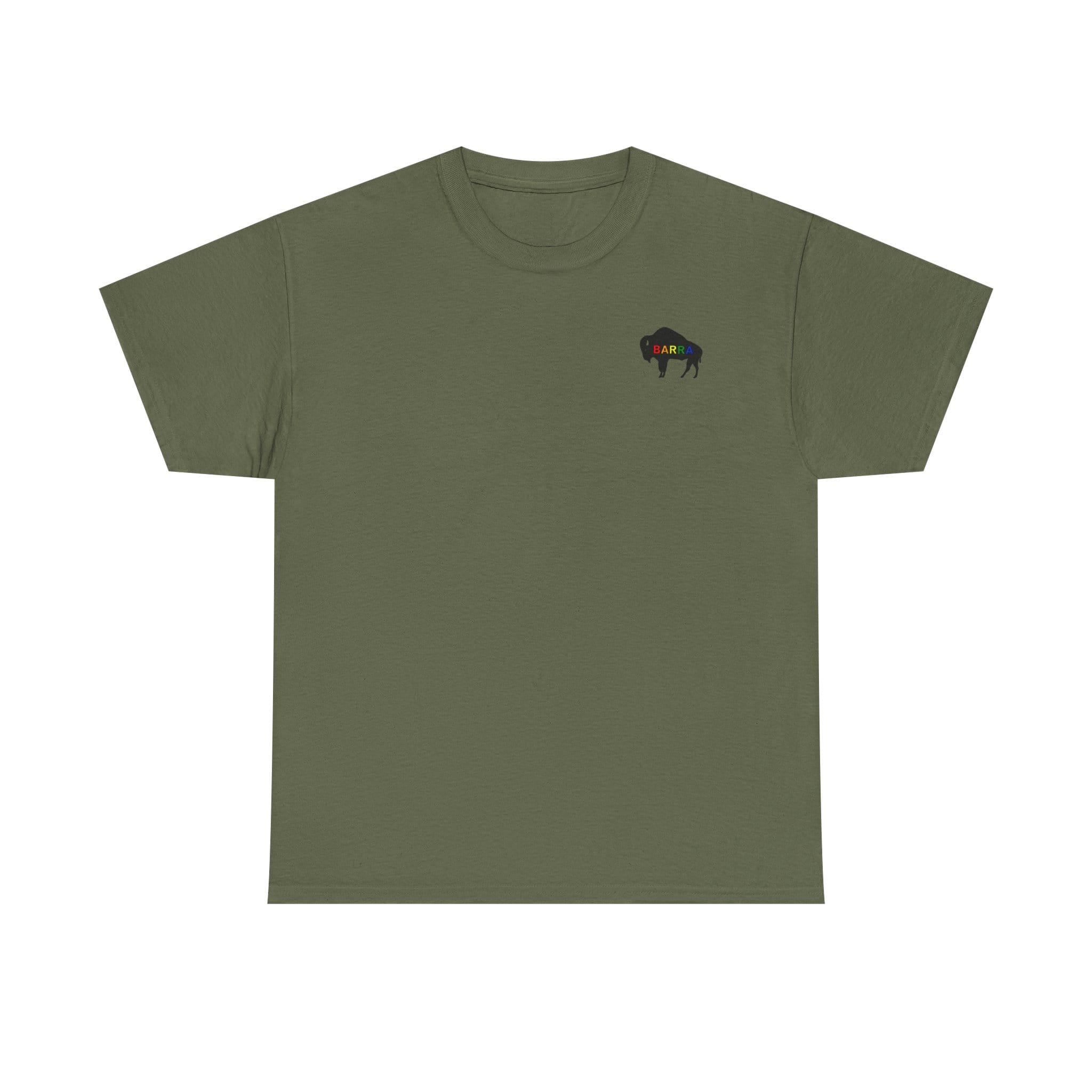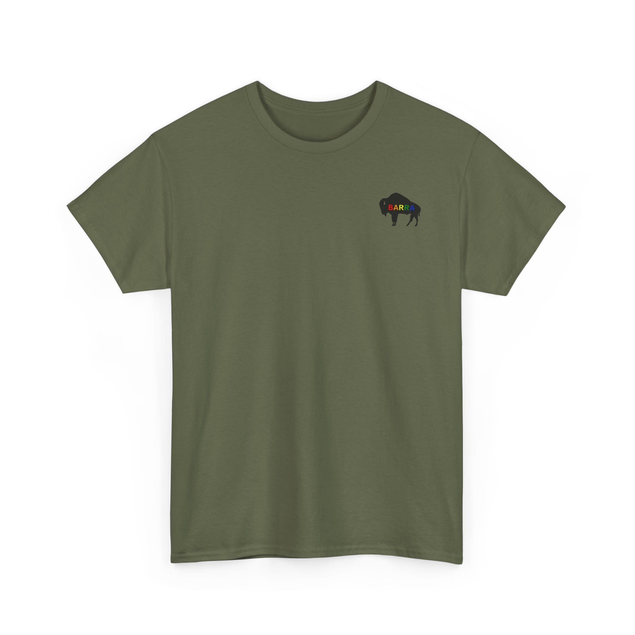 Wear it to slow weekend drives, local festivals, or casual nights around a bonfire. The understated graphic and clean lines slot easily into a range of wardrobes: pair with worn denim and boots for a rugged look, or with chinos and a denim jacket for a more put-together casual outfit. The soft, smooth fabric prints crisply, so the buffalo silhouette and red lettering stay bold after many washes. For people who like their clothing to feel like a quiet statement, this tee settles right in.